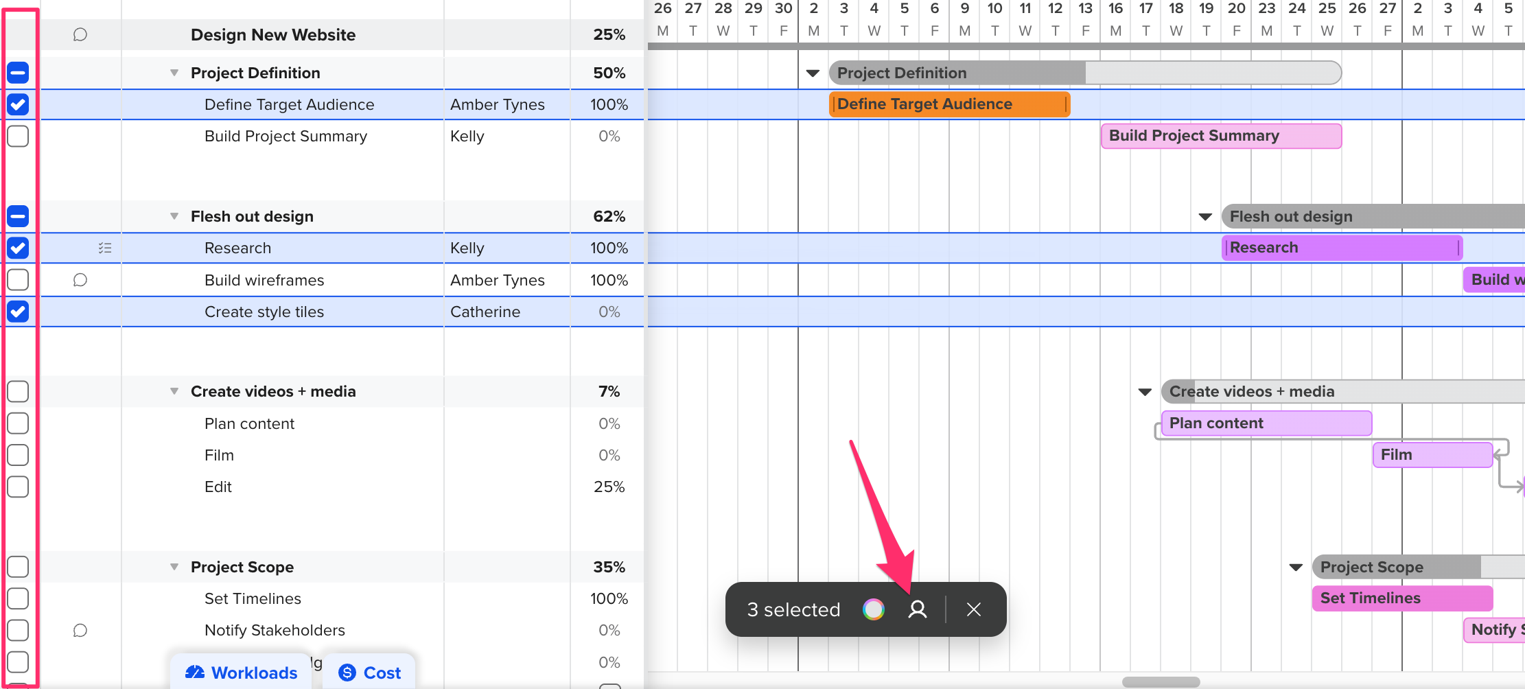 - Repeat step #2 until you've selected all the tasks/milestones you need to assign to the person or label.
